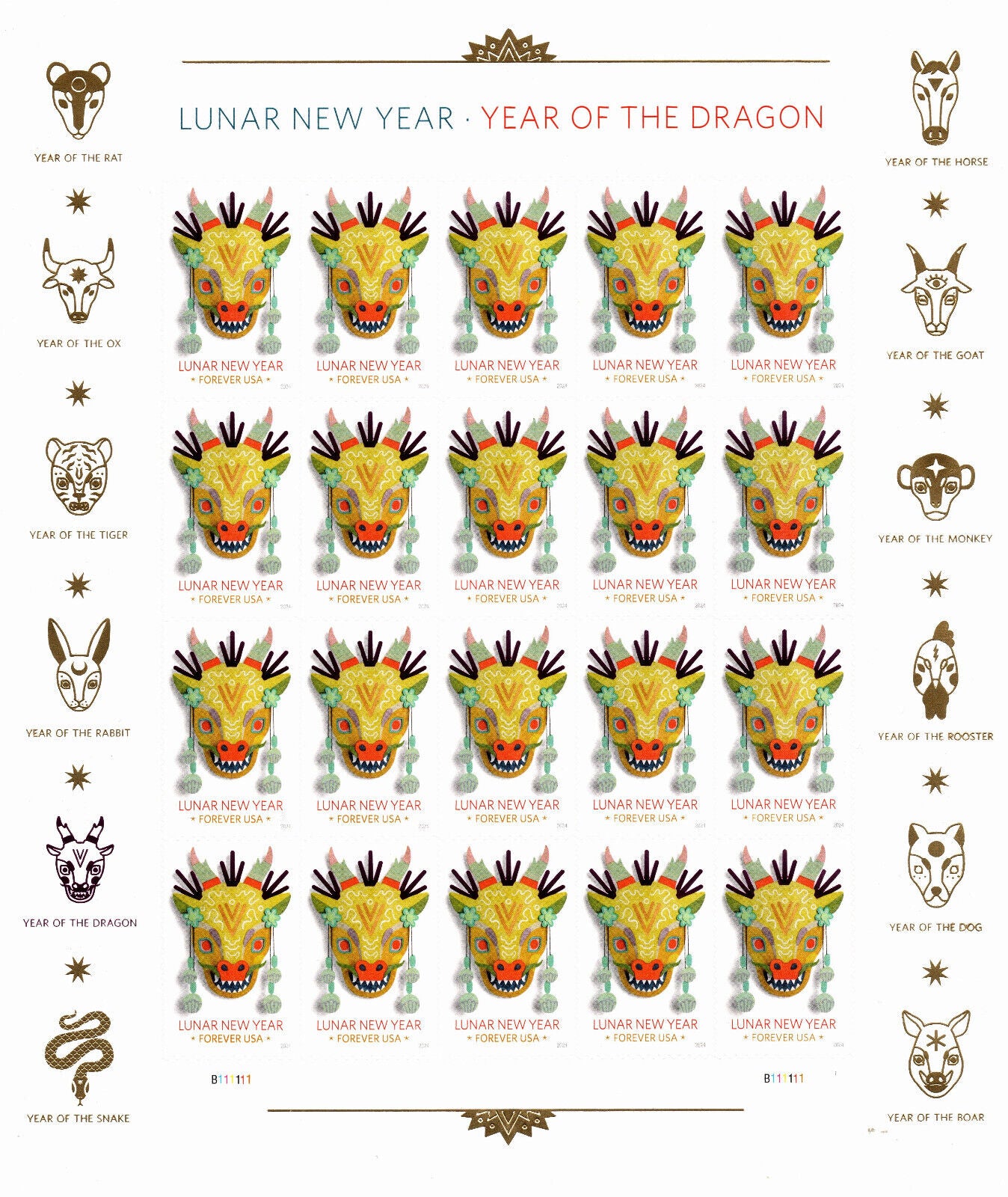 Year of the Dragon Stamp Celebrates Lunar New Year Forever First Class Postage Stamps